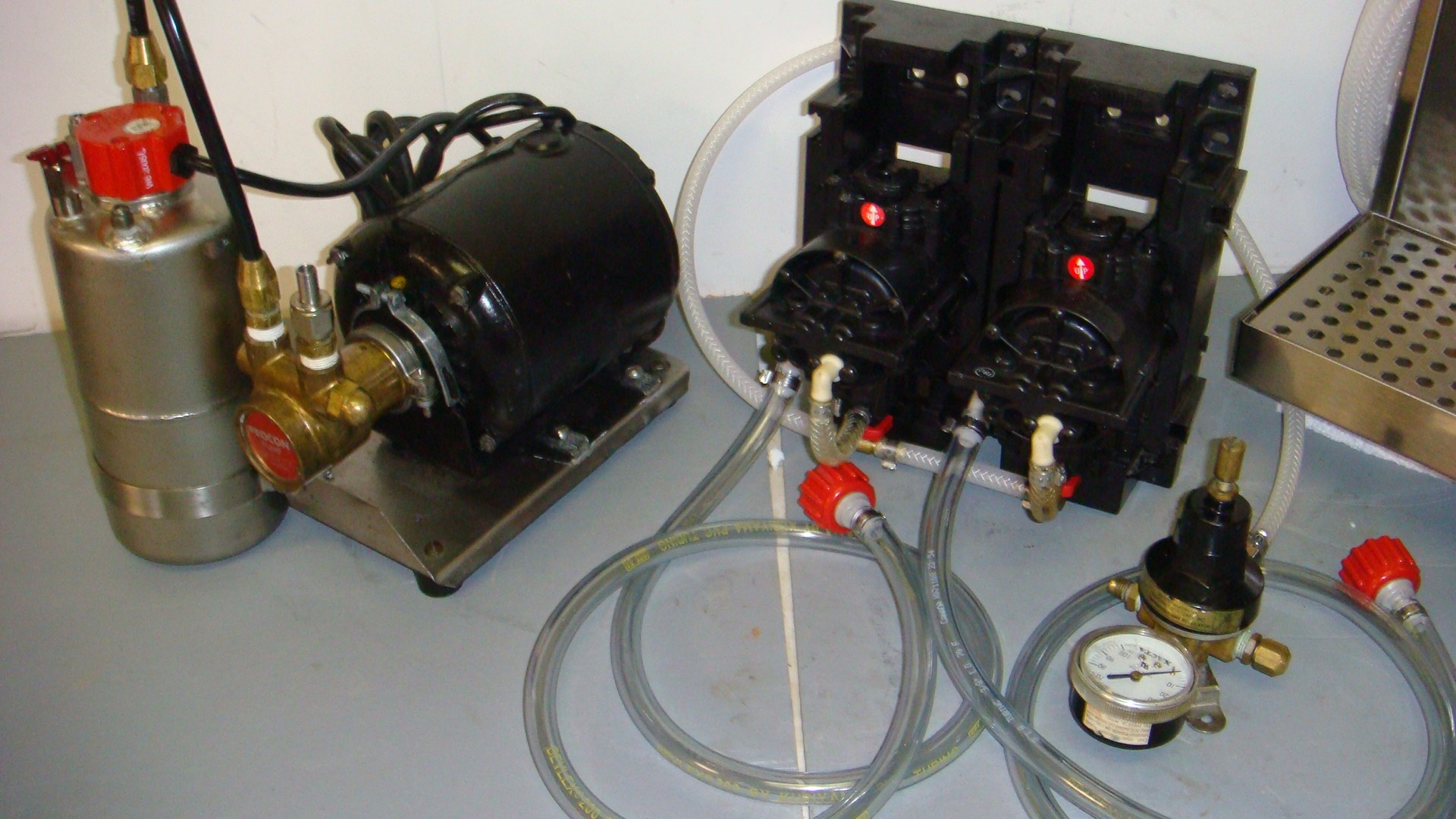 New stainless steel two head tower. Easily installs in numerous locations, because of it's compact size (10" w x 9" d x 16" h) it will blend in a variety of settings without eating up valuable counter space. Two remanufactured dispensing valves for post mix bag-in-box beverages. Simple to hook-up (we've done all the work for you). The lines have been tagged and professionally pre-assembled for easy installation. What is included: Two (2) 'Shurflo' syrup pumps mounted mounted on a pump holder, complete set of CO2 regulators, BIB connectors,carbonator, & a remote cooling system (18"W x 21" D ). Remote cooler eliminates the need for cold plate or ice. Can be installed under your counter. Runs quiet. System is set up for handling 2 separate flavors. All the equipment carries warranty. We stand behind ALL of our remanufactured equipment to operate properly. We offer FREE installation support with this purchase. **** WHAT YOU NEED TO SUPPLY.... water, electricity (120 volts), syrup & CO2 **** We will help you locate syrup & CO2 in your area!!!! This is a remanufactured system. All the tubing is new. We pressure test, performance test, and bring each component back to manufacturer's specs. The components were previously used so they may have minor dings and scratches due to normal use. |