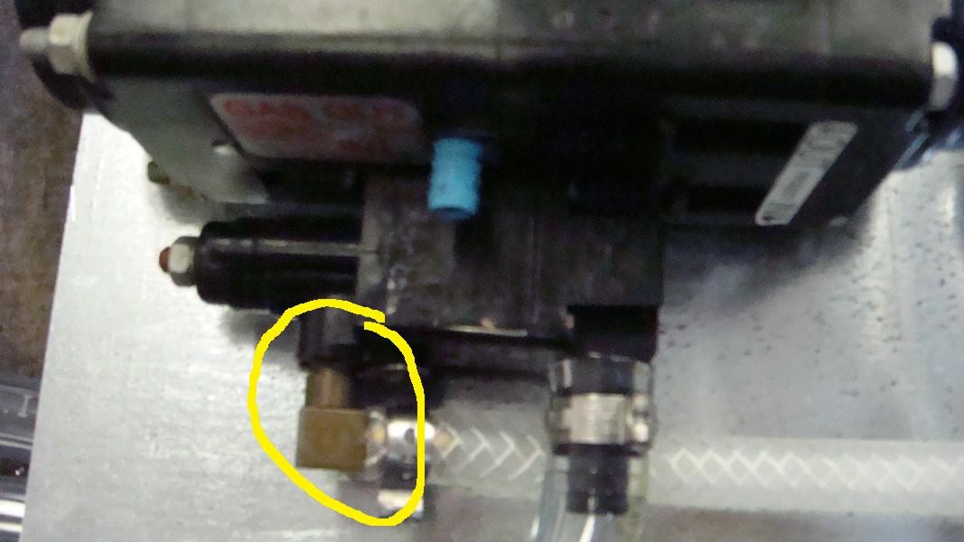 Flojet CO2 elbow shut-off. Automatically shuts off CO2 supply to pump, when unplugged.