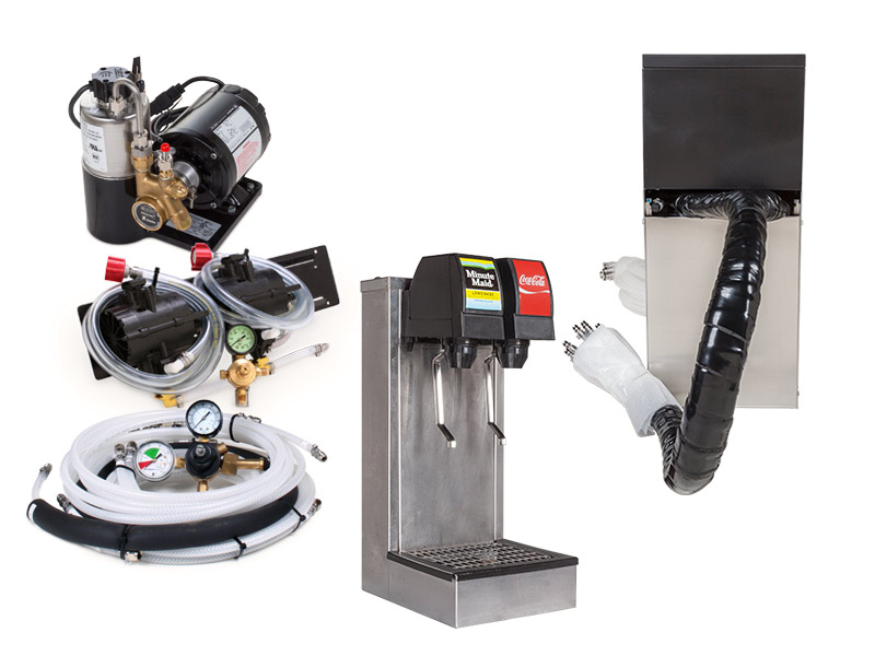 We will set up the system to accommodate your choice of post-mix bag-in-box flavor at no additional cost. Very simple hook-up. The lines have been pre-assembled & labeled. ALL of the fittings have been professionally clamped for easy installation.