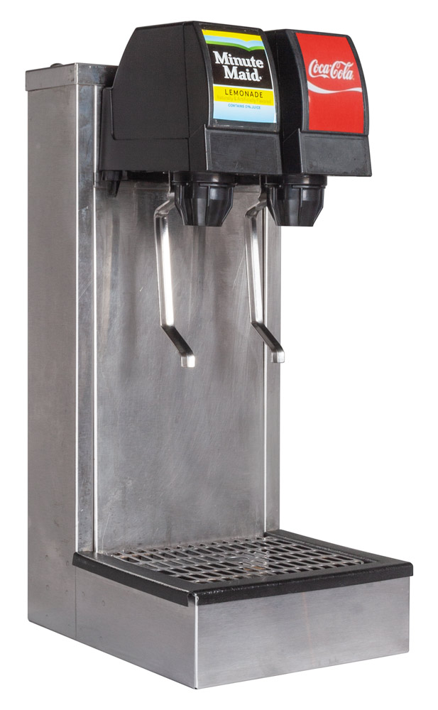 Complete, remanufactured, two (2) flavor tower soda fountain system with remote chiller. This complete system is designed for residential or commercial applications. The stainless dispenser is compact in size and blends in a variety of settings without eating up valuable counter space.