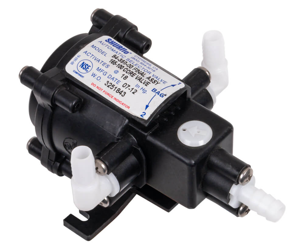 SHURflo transfer valve allows you to connect two boxes of syrup at once. The transfer valve will switch to the second box when the first one is empty.