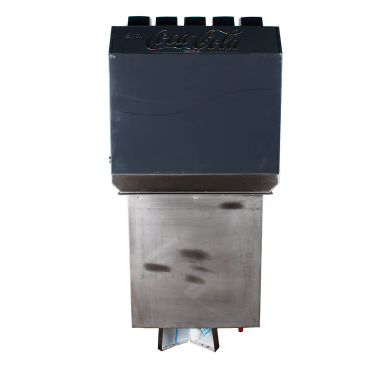 Complete, remanufactured, five (5) flavor drop-in soda fountain system. The system, with built-in ice bin (holds approx. 60 lb of ice), has built-in cold plate for efficient cooling. The system has the capability to quickly recover and can handle high volume applications, if needed. Product is consistently dispensed frosty cold.
